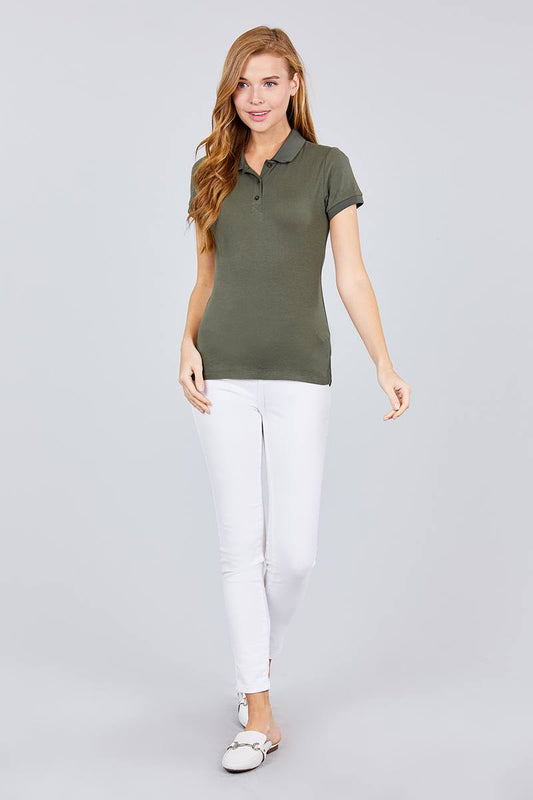 Classic Pique Spandex Polo Top